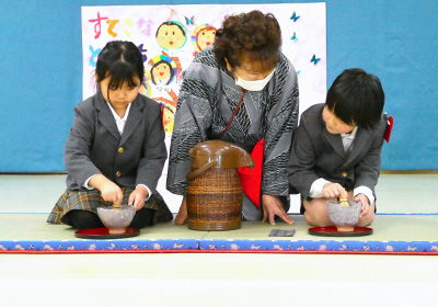 地域の先生に来ていただき、職員と一緒に簡単な作法を学びお茶を楽しんでいます。