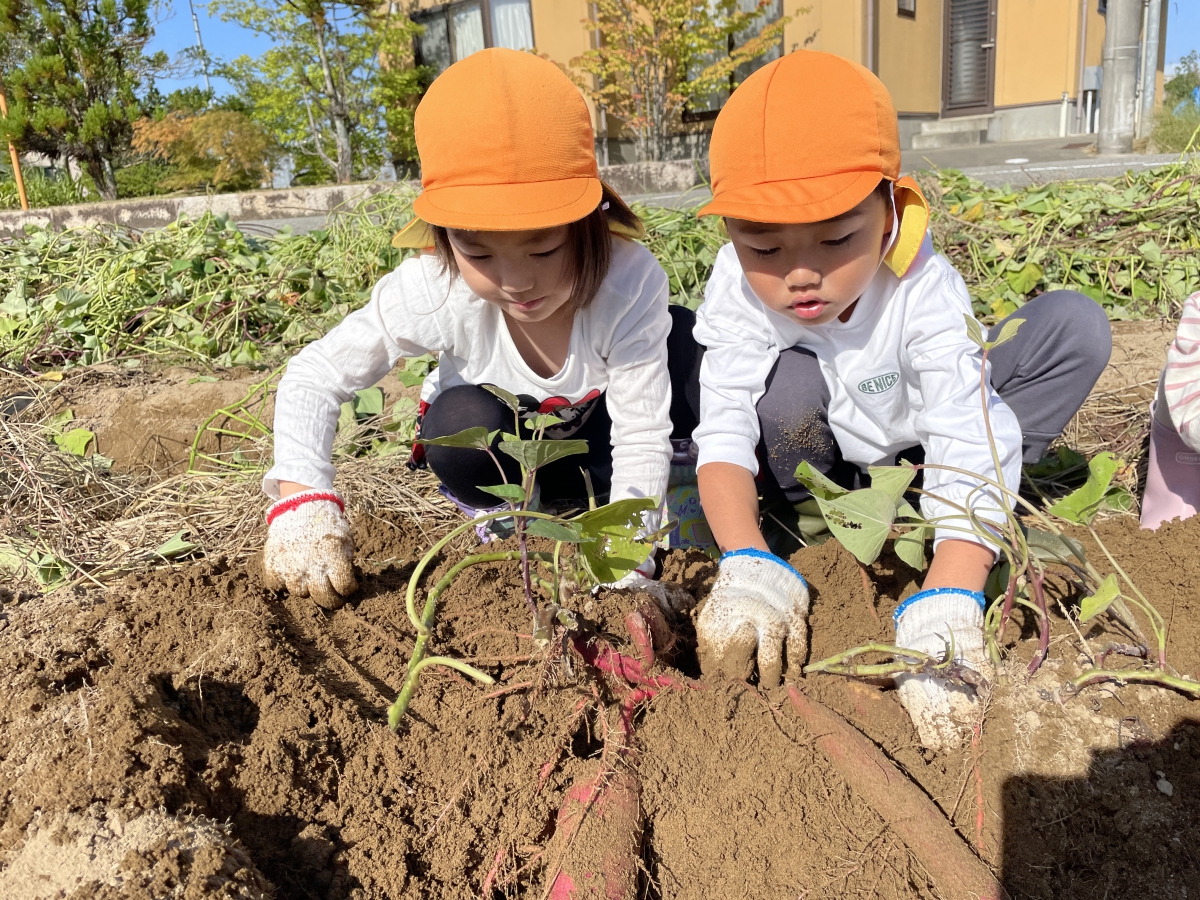年長組は園の畑で、年中・年少組は理事長先生の畑でさつまいも掘りをしましたよ!