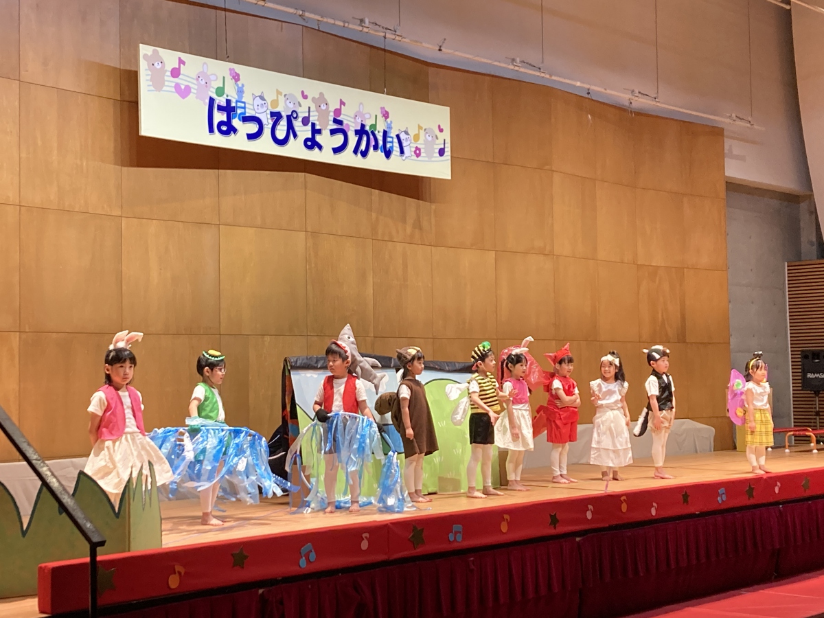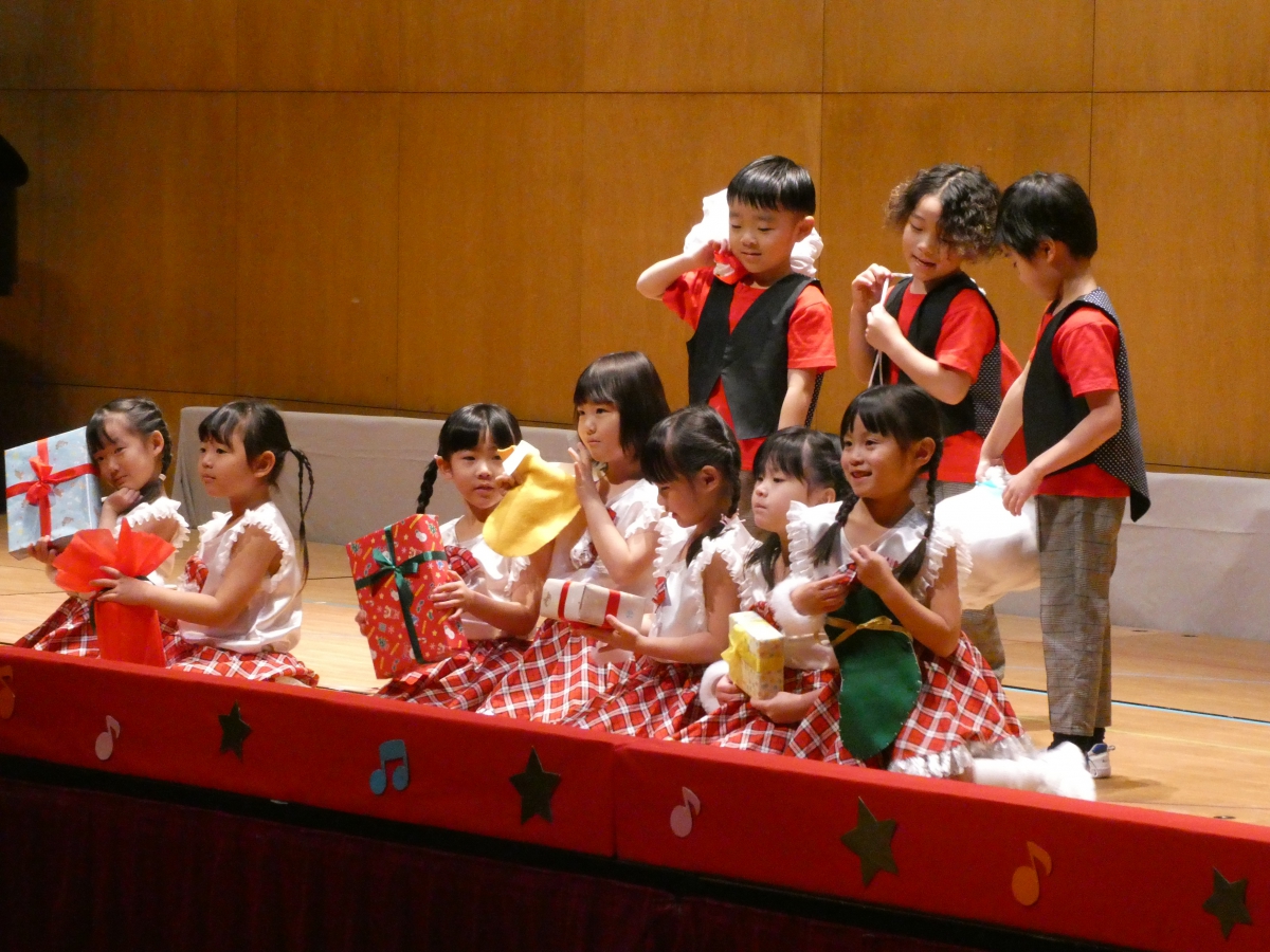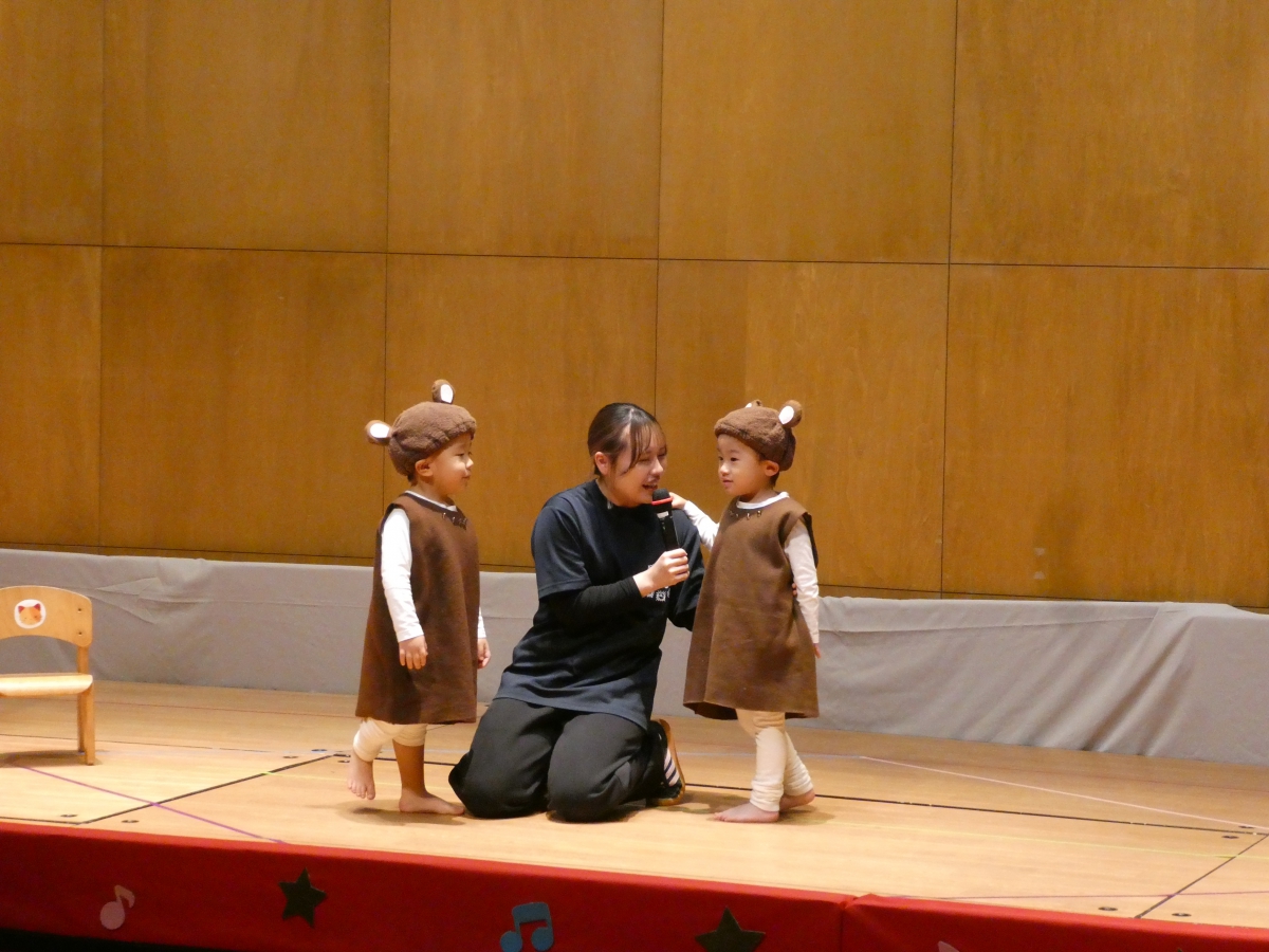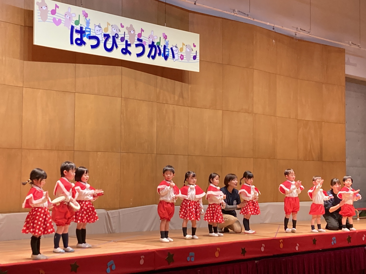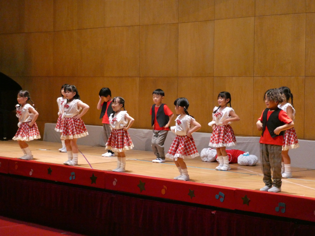 アルバム トップ アルバム 2025-12-6 発表会 今年も小松ドームで発表会がありました。 初めて参加した2歳児クラスのお友達は恥ずかしそうにしたり、お家の人を見て嬉しくなったり様々な姿を見せていましたよ。 3.4.5歳児クラスのお友達は、かわいい衣装やかっこいい衣装を着ると気分も乗ってきて、自分の得意なことを見せたり、今まで練習してきたことを発表して、友達と一緒に表現する楽しさを感じたように思います。 お家の方のあたたかい拍手で、より一層喜びを感じられた発表会になりました。