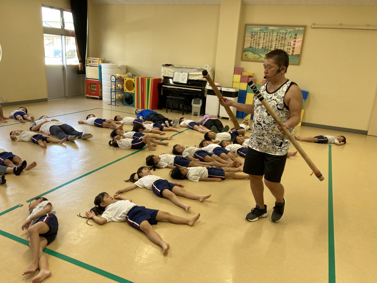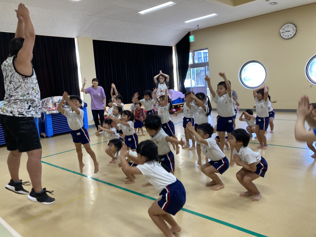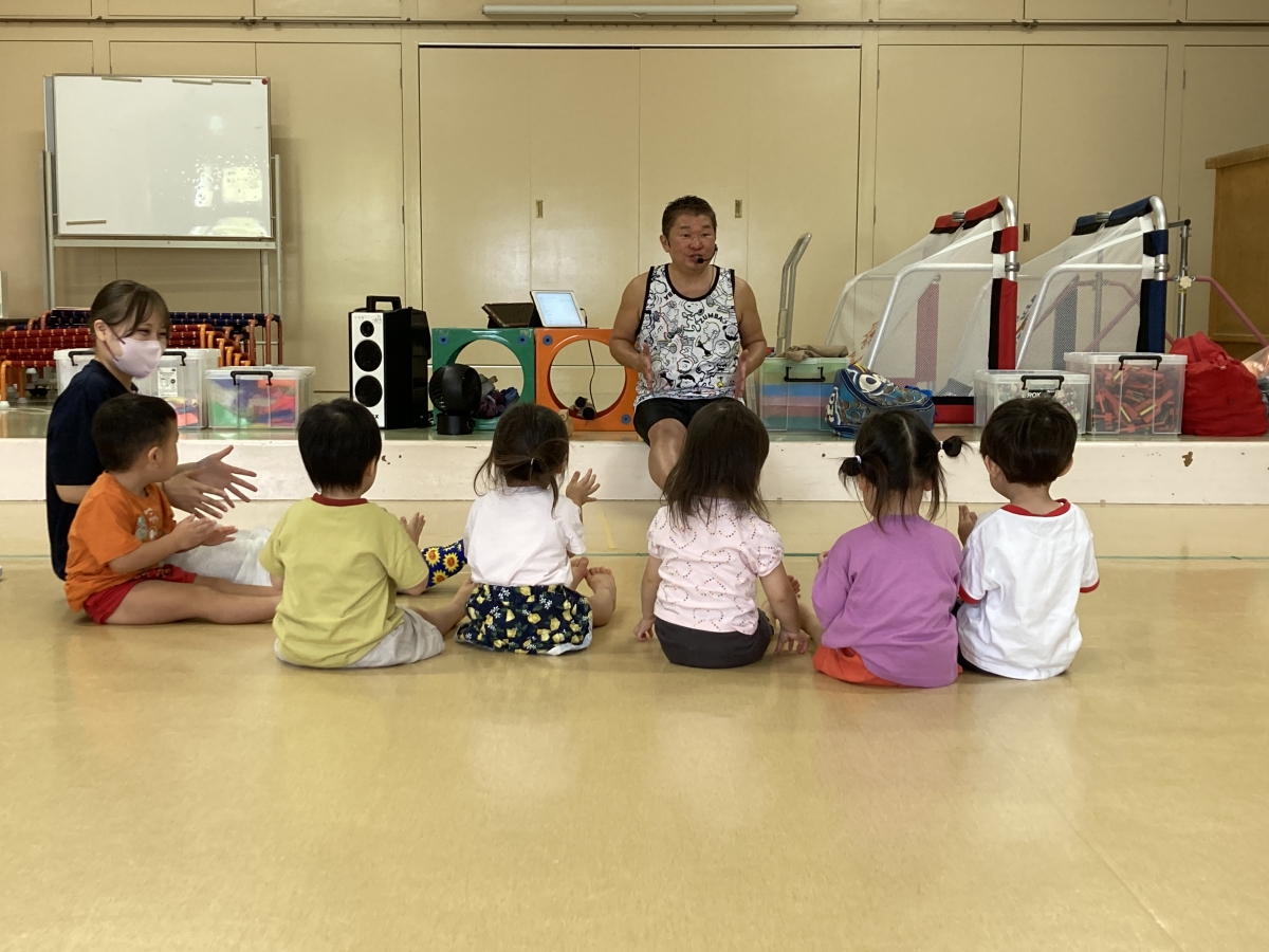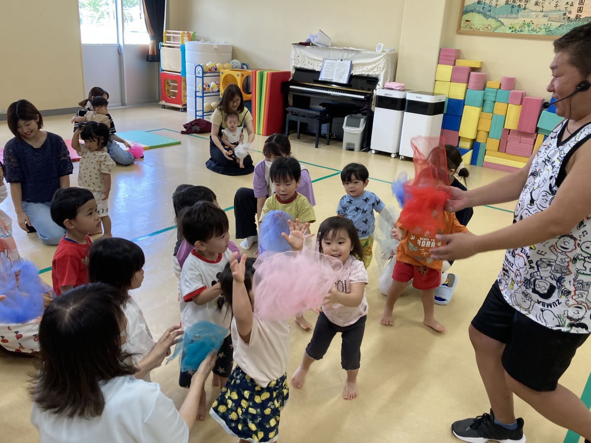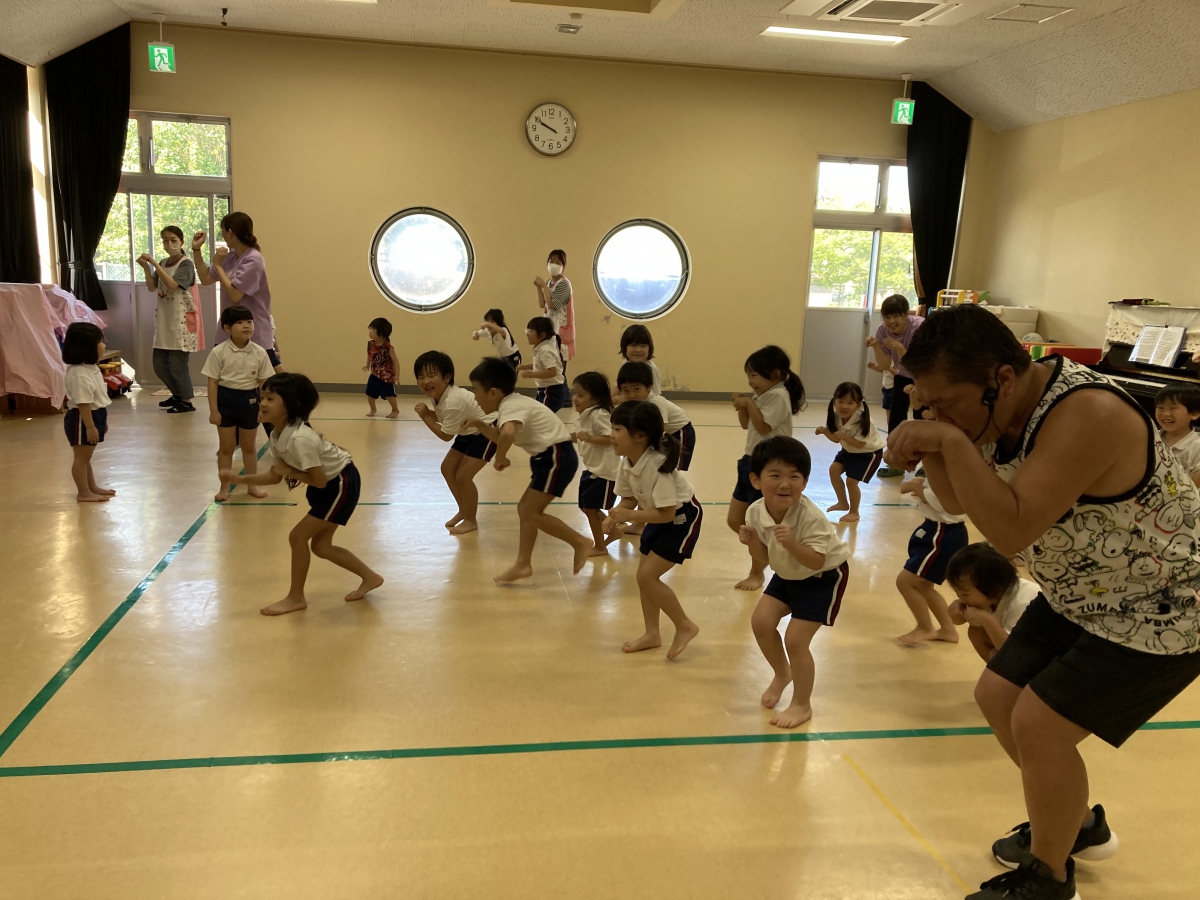 今年2回目のミュージックケアがありました🎵 3歳以上児と未満児&子育て支援ルームのお友達に分かれて行ったのですが、その日の子ども達の様子に合わせて、プログラムを組んでくれる吉田先生、すごいです! 大きい子は春に比べて見る力、聞く力が育っていてすぐにリズムダンスへと移っていきました。流行りの曲「はい、よろこんで」で子どもたちはぐっと引き込まれていましたよ。 小さい子は、「からだがピアノになっちゃった」で触れ合い、緊張がとけたところから、うちわやオーガンジー布を使ってリズム遊びを楽しみ、大喜びでした。 音楽を通して集中力やリズム感を養うだけでなく、刺激や運動によって気持ちの安定も期待できる音楽療法リトミック。 3回目も楽しみにしている子ども達です🎵