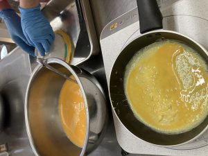 オムライスの卵シートを1枚ずつ焼いています🍳