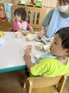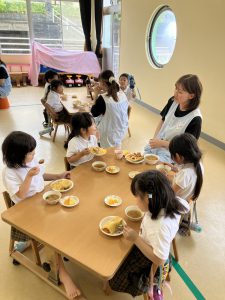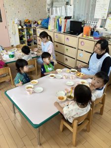 好きなメニューの話や遊びの話など、、いろんな話に花を咲かせていました😁