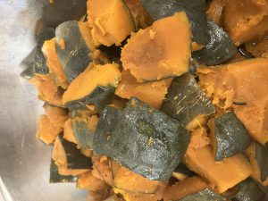 給食にかぼちゃの煮物、昼間のおやつにみかんを提供しました🍊