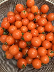 プチトマトは、丸い形なので、1/4に切って食べやすい形にします♪