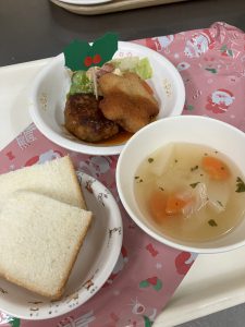 さて、昨日、24日はクリスマスおたのしみランチ💛、今日は、クリスマスなのでおしゃれな給食を提供しました💕😁