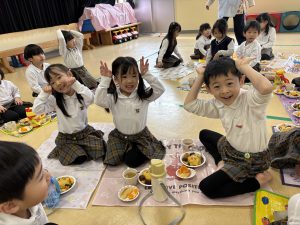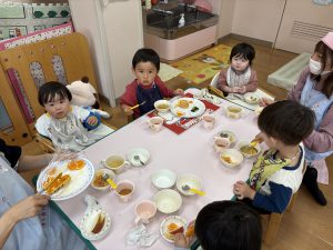 「可愛くて食べれない😂」「ありがとう」と、うれしい言葉を子どもたちからもらい、給食👩🍳👩🍳とっても嬉しかったです。